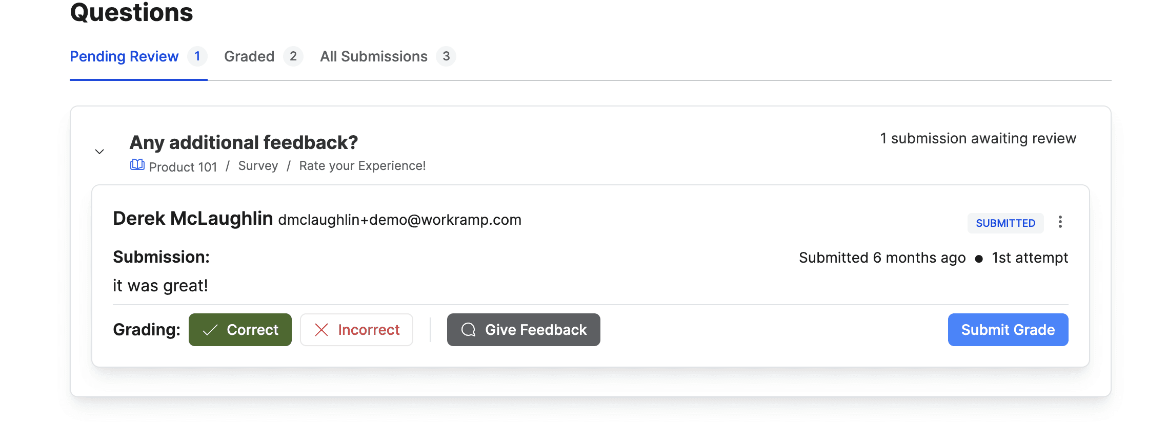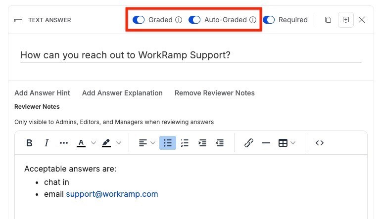 Manual grading on written questions is so yesterday. Now Admins can save time when they enable AI to auto-review any Graded text questions with Reviewer Notes.